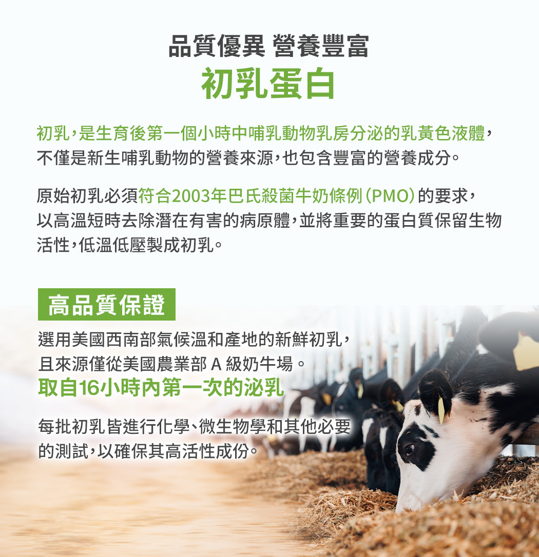 🔸嚴選國際A級奶牛場新鮮初乳蛋白(含IgG免疫蛋白)