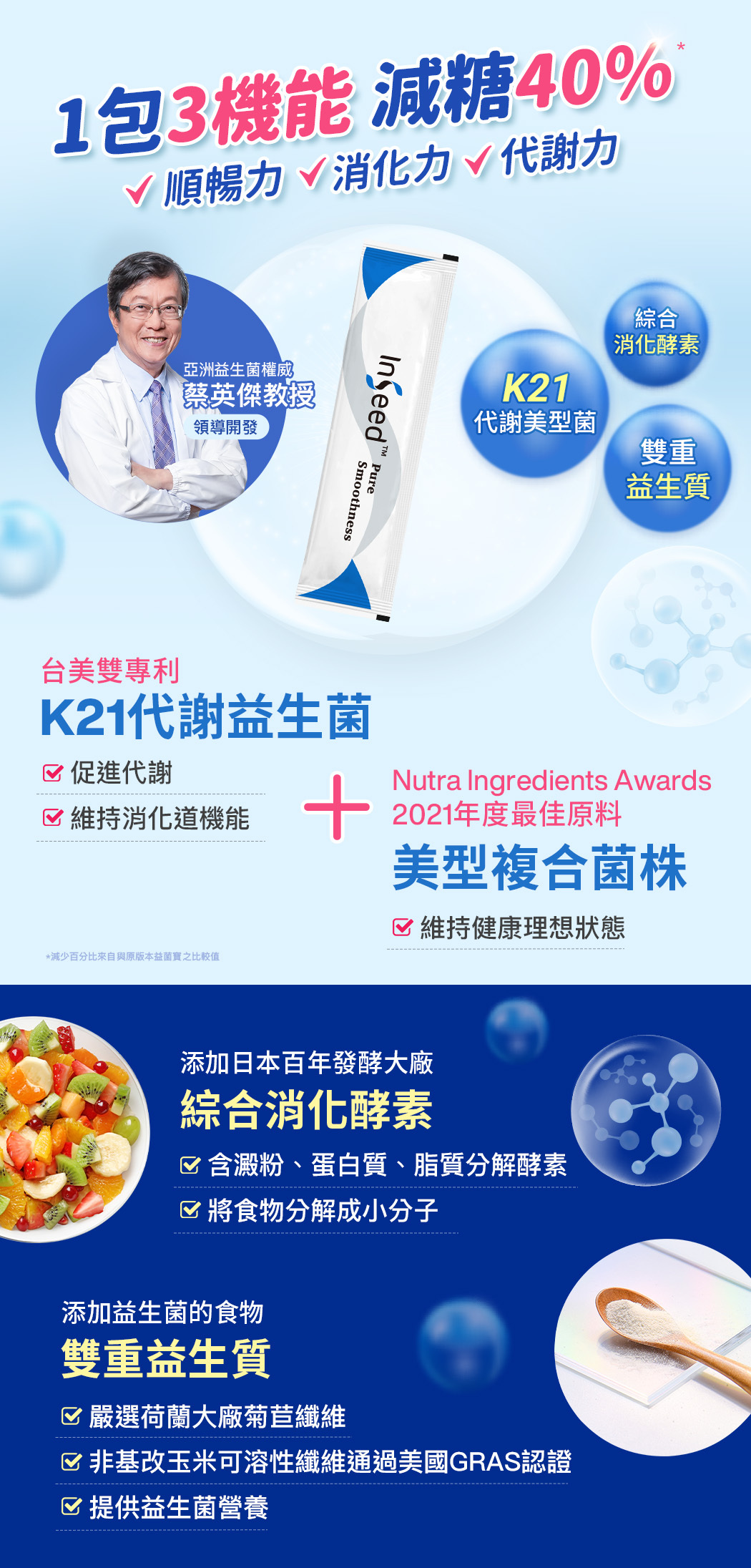 K21™代謝菌株&美型複合菌株+綜合消化酵素 (蛋白質、脂肪、澱粉分解酵素)+雙重益生質