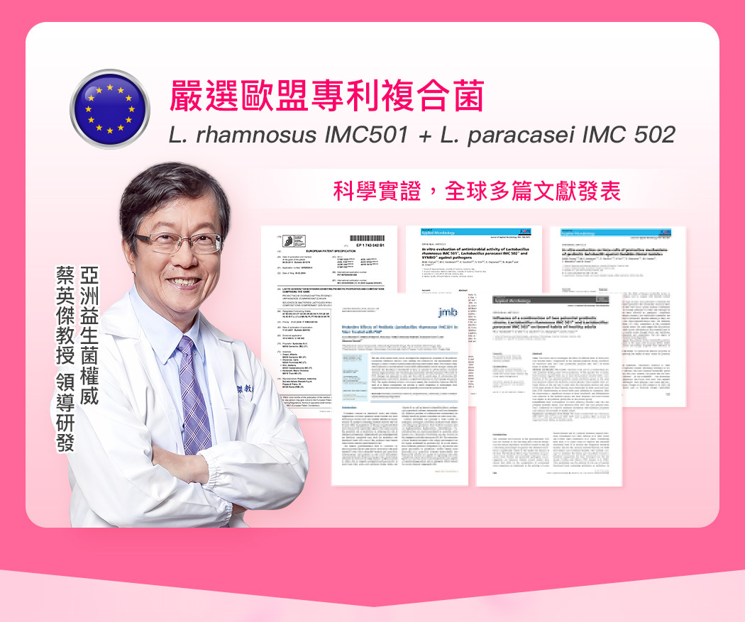 淨美莓 KM97™ 、IMC501、502女性益生菌+SP1菌株+四植萃,守護女性健康,打造由內而外蘋果好顏色。