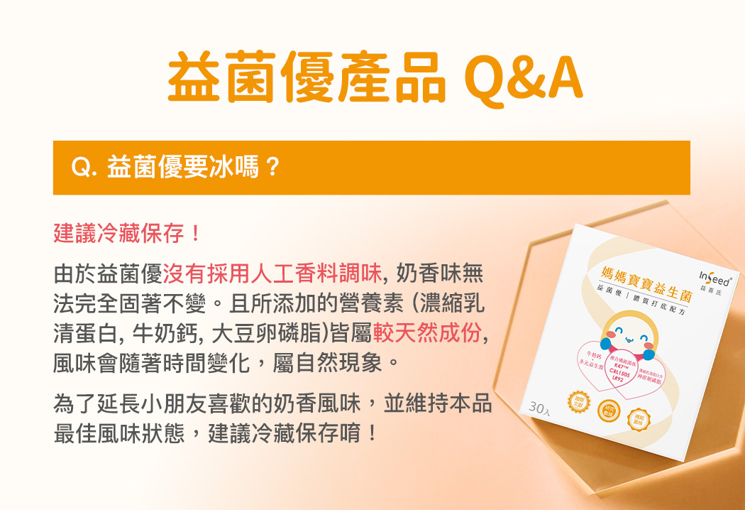 益菌優產品是針對媽媽及寶寶特別設計的產品配方,使用的成分皆以天然乳製品的原料為主,沒有人工添加物。