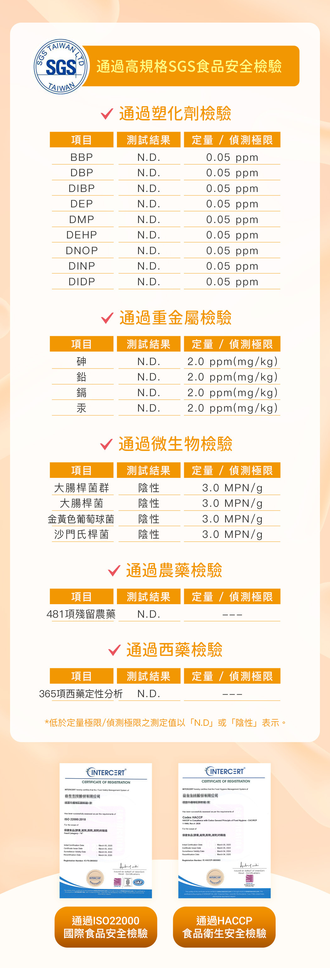 ◉ 通過SGS、ISO22000、HACCP食品安全檢驗