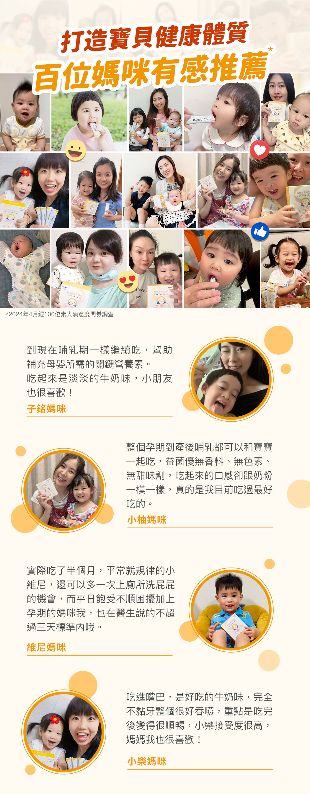 【產品注意事項】益菌優產品是針對媽媽及寶寶特別設計的產品配方,使用的成分皆以天然乳製品的原料為主,沒有人工添加物。