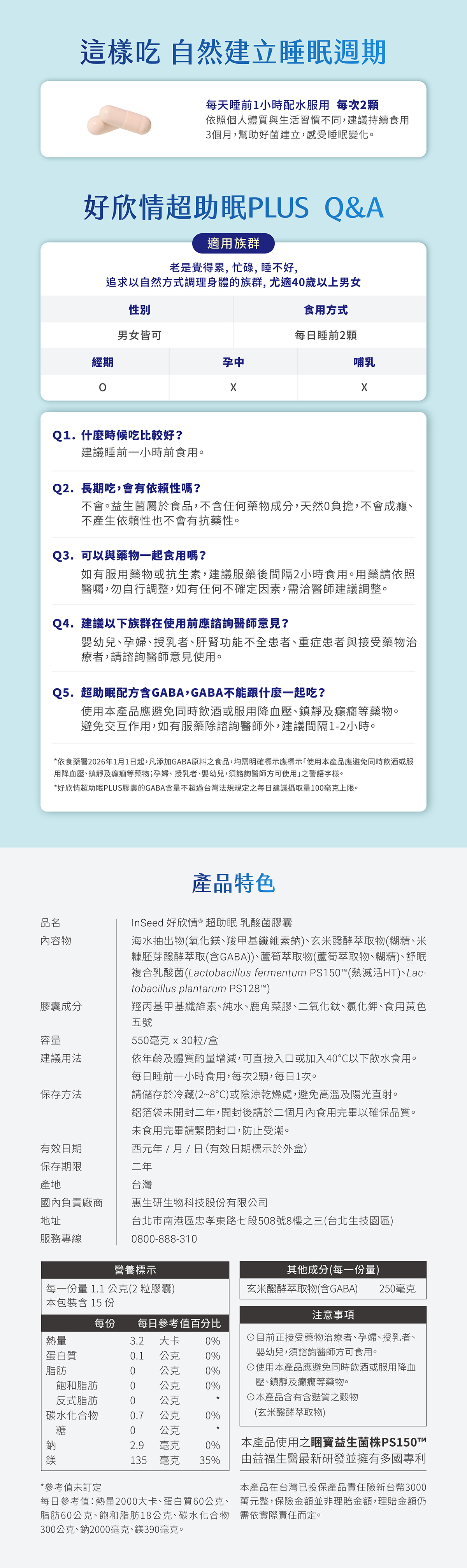 ● 品名:InSeed 好欣情超助眠益生菌膠囊